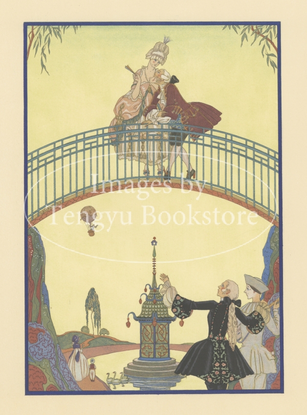20世紀初頭フランスのイラストレーター、ジョルジュ・バルビエ(1882-1932)が、19世紀フランスの詩人ポール・ヴェルレーヌ(1844-1896)の代表作「艶なる宴」を描いた挿絵本中の一枚。