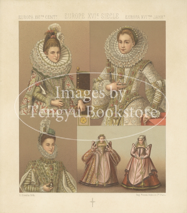 多色刷石版によってカラー印刷された、世界の歴史的衣装や民族衣装の図は、資料的な価値はもちろん、美術的にも評価の高い貴重なイラストです。