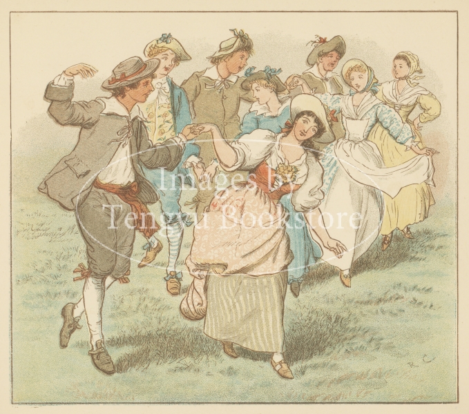 19世紀イギリスを代表する絵本作家の一人、ランドルフ・コルデコット(1846-1886)の絵本「おいで 若い娘と息子たち」のイラスト。