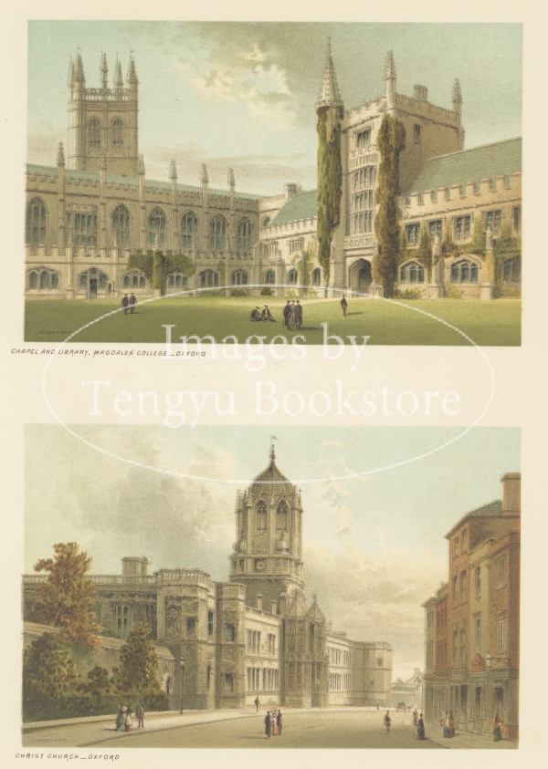 ロンドンやオックスフォードといった都市部から、自然豊かなスカボローやワイト島まで、イギリスの様々な景色が色鮮やかな石版画で表現されています。