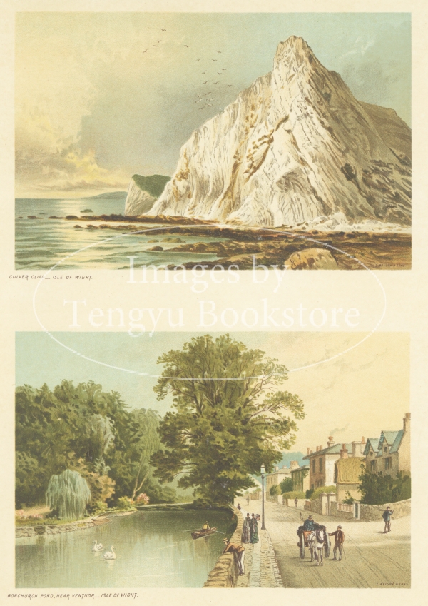 ロンドンやオックスフォードといった都市部から、自然豊かなスカボローやワイト島まで、イギリスの様々な景色が色鮮やかな石版画で表現されています。