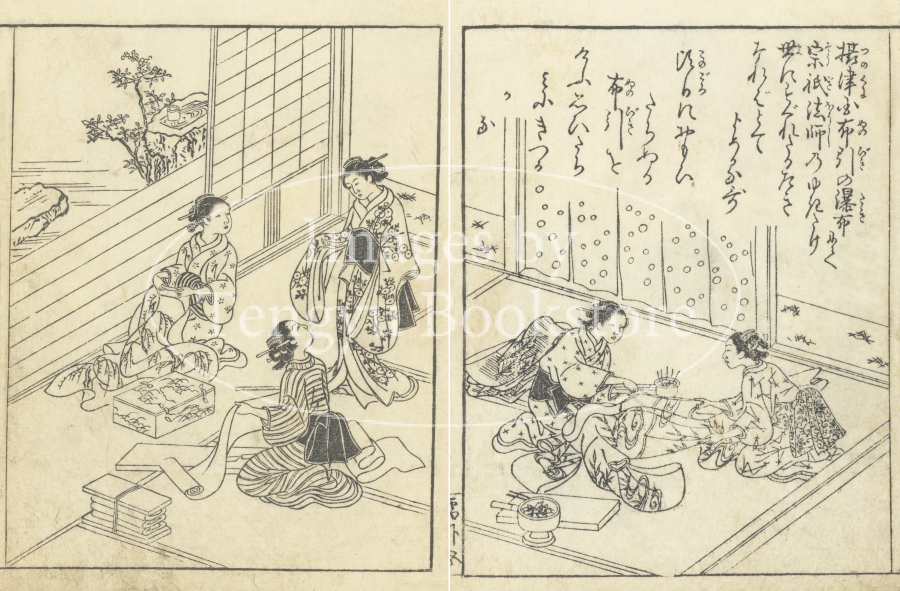 江戸前期から中期にかけて活躍した京都の絵師 西川祐信(にしかわ すけのぶ:1671-1750)による絵本の挿絵。