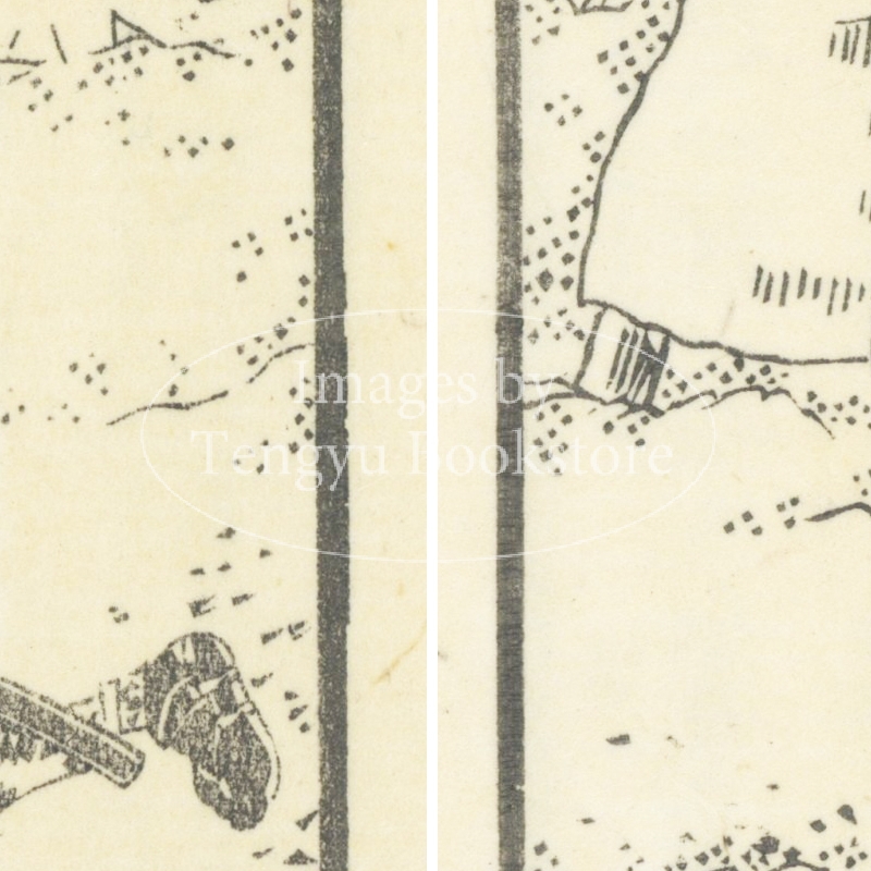 本来は2枚に分けて描かれた作品であるため、色味や図案の整合に若干の不統一があることをご了承ください。