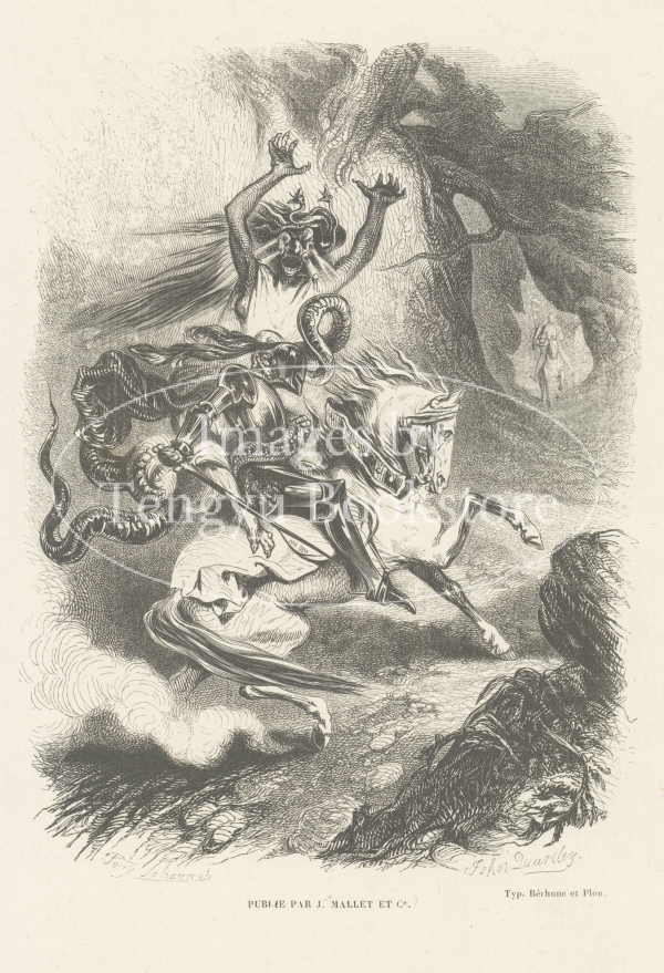 ルネサンス期イタリアの詩人アリオスト(1474-1553)の代表作「狂えるオルランド」の19世紀フランス語訳版の挿絵。