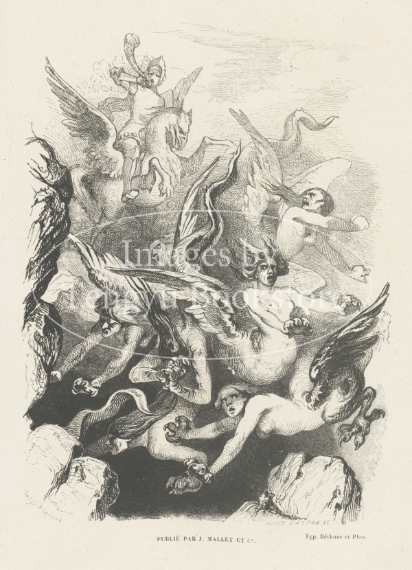 ルネサンス期イタリアの詩人アリオスト(1474-1553)の代表作「狂えるオルランド」の19世紀フランス語訳版の挿絵。