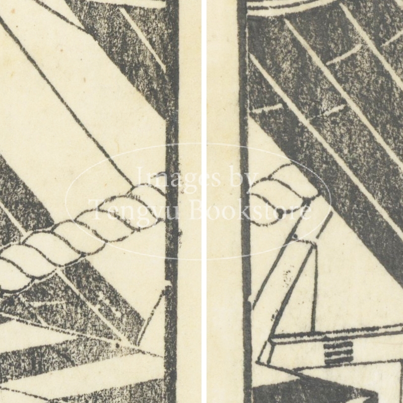本来は2枚に分けて描かれた作品であるため、色味や図案の整合に若干の不統一があることをご了承ください。