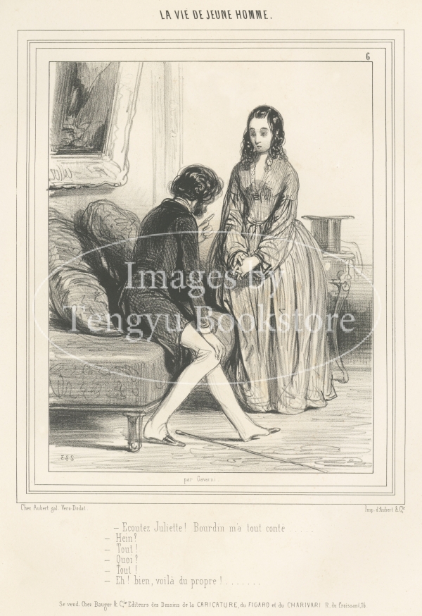 19世紀フランスの挿絵画家ガヴァルニ(ギヨーム=シュルピス・シュヴァリエ/1804-1866)による風刺イラストシリーズのひとつ「青年の生活」中の1枚。