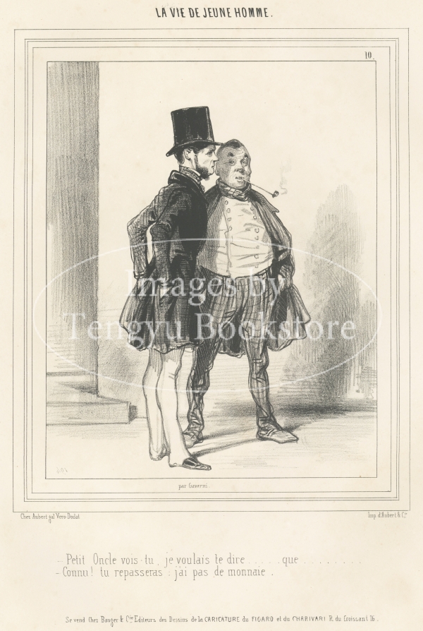 19世紀フランスの挿絵画家ガヴァルニ(ギヨーム=シュルピス・シュヴァリエ/1804-1866)による風刺イラストシリーズのひとつ「青年の生活」中の1枚。