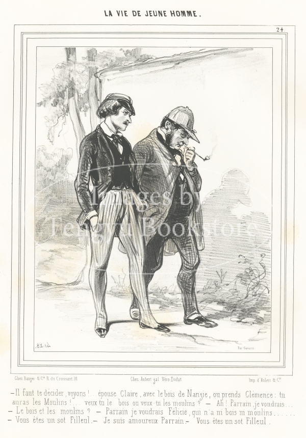 19世紀フランスの挿絵画家ガヴァルニ(ギヨーム=シュルピス・シュヴァリエ/1804-1866)による風刺イラストシリーズのひとつ「青年の生活」中の1枚。