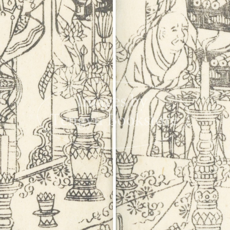 本来は2枚に分けて描かれた作品であるため、色味や図案の整合に若干の不統一があることをご了承ください。
