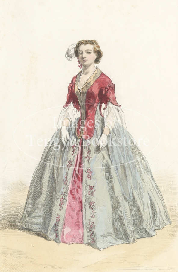 19世紀フランスのイラストレーター、ガヴァルニ(1804-1866)原画による手彩色銅版画ファッション・プレート。