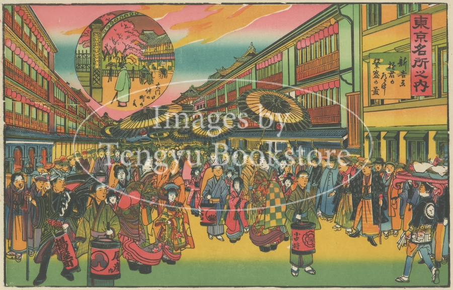 「東京名所之内 新吉原 遊君の道中 繁盛の図」