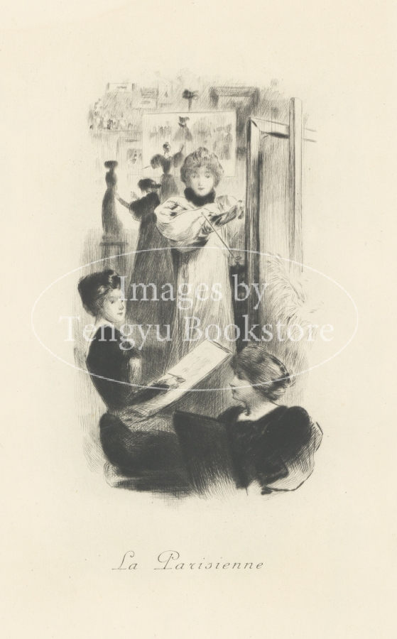 文筆家ジョルジュ・モントルグイユ(1857-1933)のエッセイにイラストレーター、アンリ・ソム(1844-1907)の銅版画(エッチング)を添えた本書は、19世紀末パリの女性たちをスケッチした美麗な挿絵本であると同時に、風俗史書としても貴重な近代女性像の記録です。