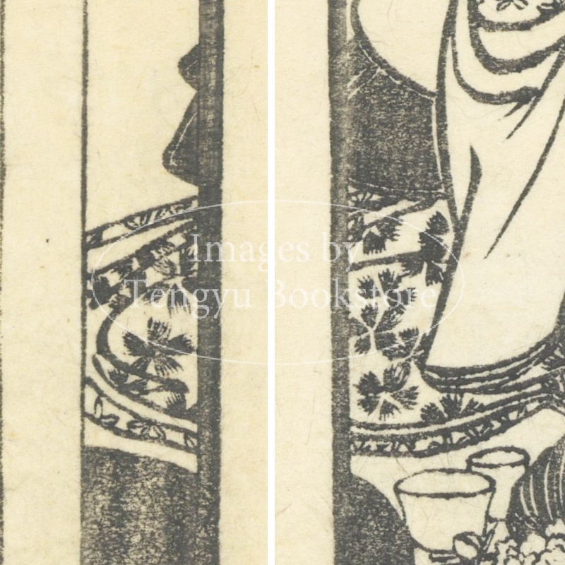 本来は2枚に分けて描かれた作品であるため、色味や図案の整合に若干の不統一があることをご了承ください。