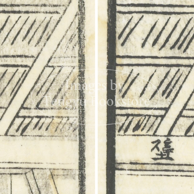 本来は2枚に分けて描かれた作品であるため、色味や図案の整合に若干の不統一があることをご了承ください。