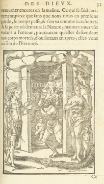 16世紀後期刊行の古代神話解説書「古人たちの神々の姿について」(フランス語訳版)の1ページ。