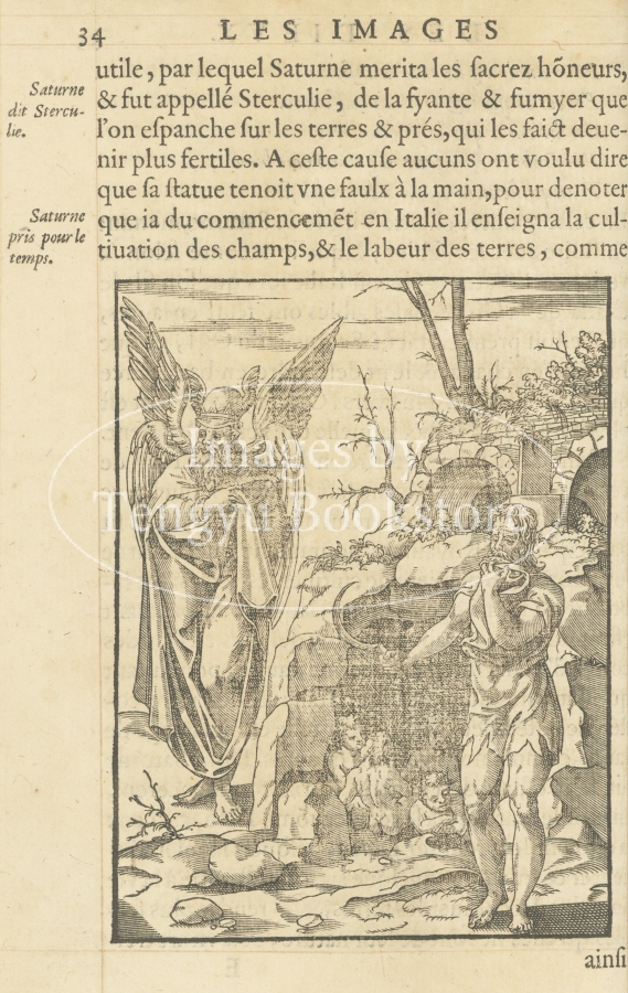 16世紀後期刊行の古代神話解説書「古人たちの神々の姿について」(フランス語訳版)の1ページ。