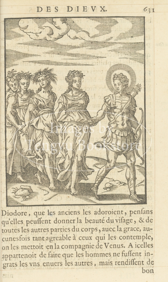 16世紀後期刊行の古代神話解説書「古人たちの神々の姿について」(フランス語訳版)の1ページ。