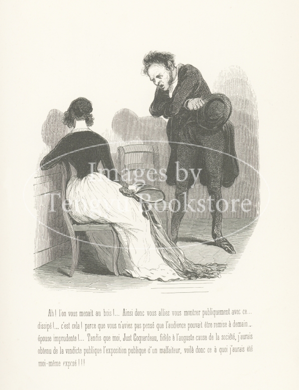 19世紀フランスの挿絵画家ガヴァルニ(ギヨーム=シュルピス・シュヴァリエ/1804-1866)の作品集「ガヴァルニ:作品選集―現代風俗の研究」に収録されたシリーズ「Fourberies de Femmes / 女たちのたくらみ」中の一図。