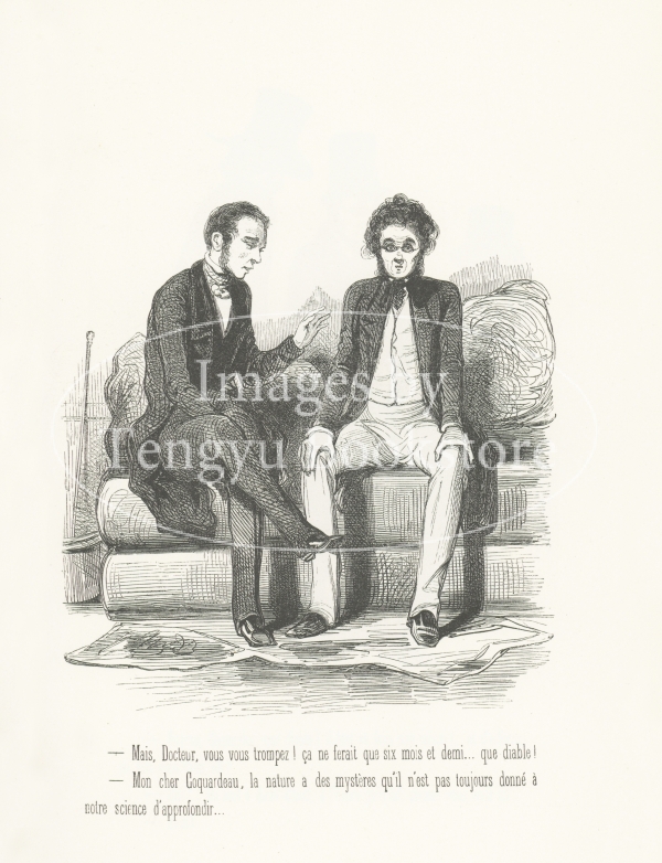 19世紀フランスの挿絵画家ガヴァルニ(ギヨーム=シュルピス・シュヴァリエ/1804-1866)の作品集「ガヴァルニ:作品選集―現代風俗の研究」に収録されたシリーズ「Fourberies de Femmes / 女たちのたくらみ」中の一図。