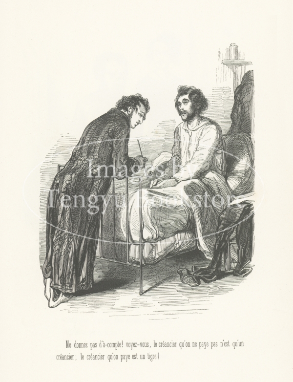 19世紀フランスの挿絵画家ガヴァルニ(ギヨーム=シュルピス・シュヴァリエ/1804-1866)の作品集「ガヴァルニ:作品選集―現代風俗の研究」に収録されたシリーズ「clichy / クリシー」中の一図。