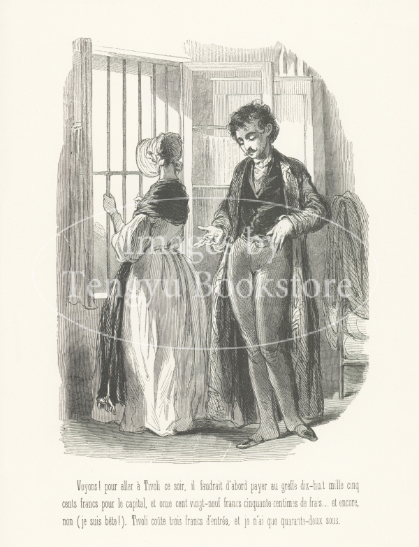 19世紀フランスの挿絵画家ガヴァルニ(ギヨーム=シュルピス・シュヴァリエ/1804-1866)の作品集「ガヴァルニ:作品選集―現代風俗の研究」に収録されたシリーズ「clichy / クリシー」中の一図。