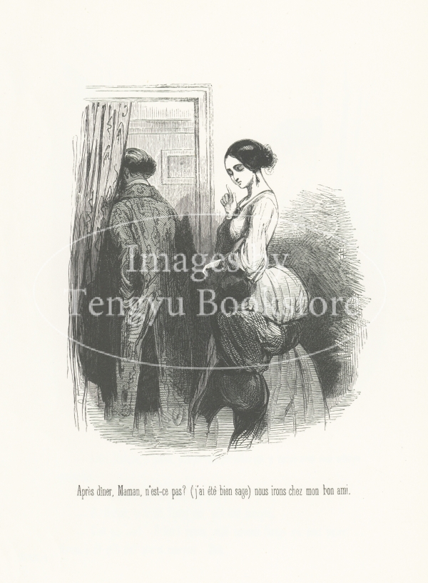 19世紀フランスの挿絵画家ガヴァルニ(ギヨーム=シュルピス・シュヴァリエ/1804-1866)の作品集「ガヴァルニ:作品選集―現代風俗の研究」に収録されたシリーズ「les enfants terribles / 恐るべき子供たち」中の一図。