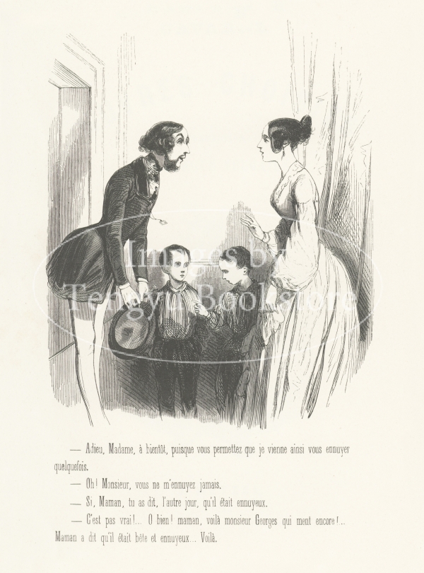 19世紀フランスの挿絵画家ガヴァルニ(ギヨーム=シュルピス・シュヴァリエ/1804-1866)の作品集「ガヴァルニ:作品選集―現代風俗の研究」に収録されたシリーズ「les enfants terribles / 恐るべき子供たち」中の一図。