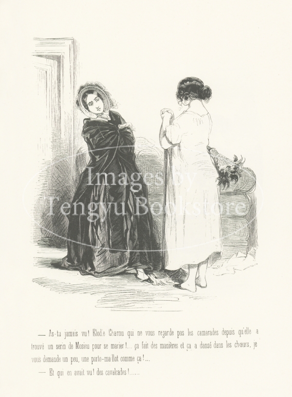 19世紀フランスの挿絵画家ガヴァルニ(ギヨーム=シュルピス・シュヴァリエ/1804-1866)の作品集「ガヴァルニ:作品選集―現代風俗の研究」に収録されたシリーズ「les lorettes / ロレットたち」中の一図。