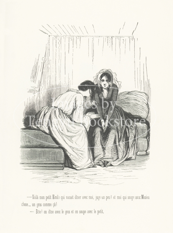 19世紀フランスの挿絵画家ガヴァルニ(ギヨーム=シュルピス・シュヴァリエ/1804-1866)の作品集「ガヴァルニ:作品選集―現代風俗の研究」に収録されたシリーズ「les lorettes / ロレットたち」中の一図。