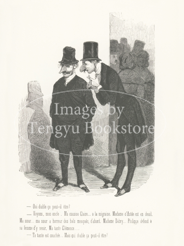 19世紀フランスを代表する風刺新聞「シャリヴァリ」で活躍し、風刺から日常スケッチ、バルザック等の小説挿絵に渡る幅広い分野で膨大な作品を残したガヴァルニは、ドーミエやグランヴィルと並ぶ19世紀挿絵界の大家。