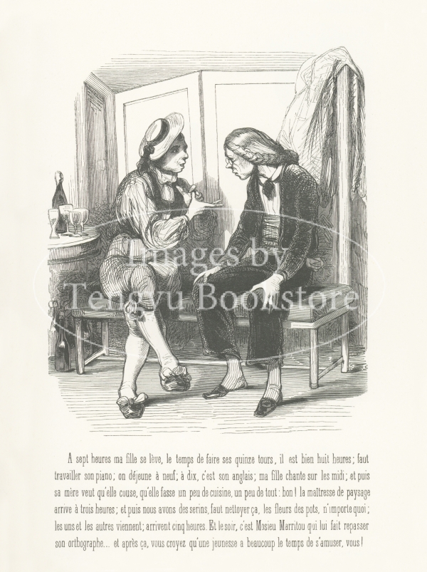 19世紀フランスを代表する風刺新聞「シャリヴァリ」で活躍し、風刺から日常スケッチ、バルザック等の小説挿絵に渡る幅広い分野で膨大な作品を残したガヴァルニは、ドーミエやグランヴィルと並ぶ19世紀挿絵界の大家。
