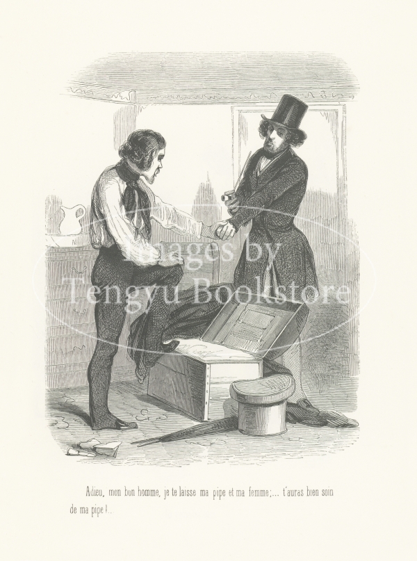 19世紀フランスの挿絵画家ガヴァルニ(ギヨーム=シュルピス・シュヴァリエ/1804-1866)の作品集「ガヴァルニ:作品選集―現代風俗の研究」に収録されたシリーズ「Les Etudiants de Paris / パリの学生」中の一図。