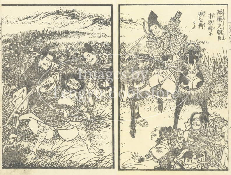 江戸時代後期の浮世絵師 渓斎英泉(けいさい えいせん/1791-1848)が日本史上の英雄たちを描いた絵本「絵本英勇鏡」中の1図。
