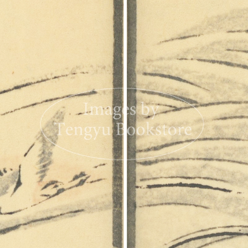 本来は2枚に分けて描かれた作品であるため、色味や図案の整合に若干の不統一があることをご了承ください。