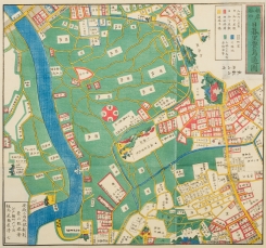 江戸の市街や近郊を複数の部分に分割し、それぞれを携帯に適した折り畳み地図として発行した、江戸時代の区分地図、切絵図。