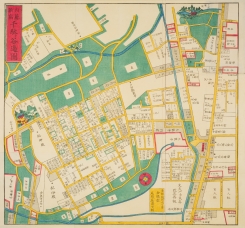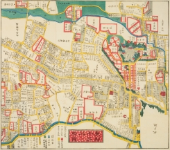 江戸の市街や近郊を複数の部分に分割し、それぞれを携帯に適した折り畳み地図として発行した、江戸時代の区分地図、切絵図。